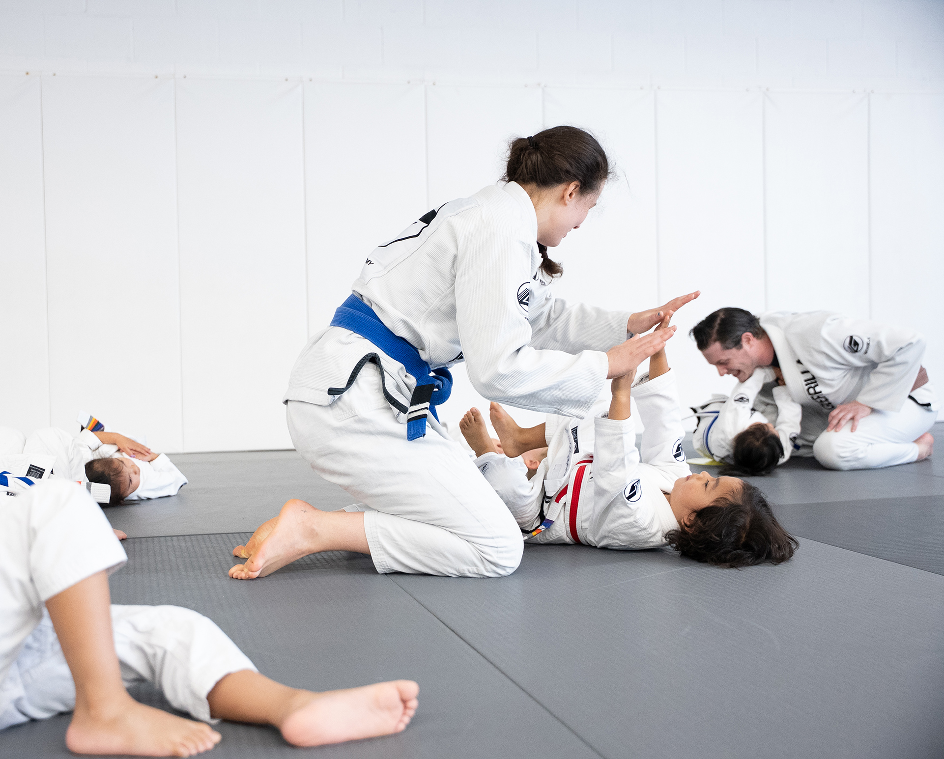 Kids are introduced to the concept of escaping bad positions using jiu-jitsu techniques.
